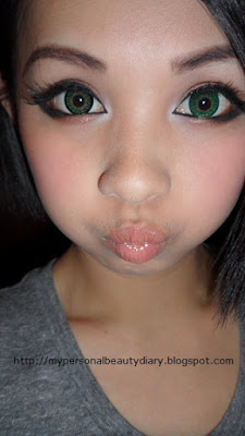 This is actually my first time trying circle lenses. I was always afraid of putting things in my eyes, and i'm sort of the lazy type girl so I've always just used the "use once throw away" type of color lenses. But I find them pretty uncomfortable and drying. One day I was looking at a website that sells Asian brand cosmetics and Korean circle lenses, I decided to give circle lenses a try. So I purchase the Geo Bambi Princess Mimi in apple green (no prescription 0.00) from www.shoppingholics.com. I also bought the Lycee eyedrops for contacts.