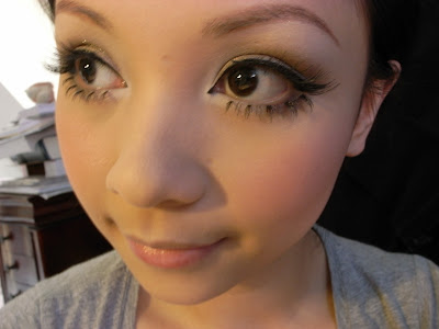 I bought these lower lashes at SaSa in Hong Kong. They were about 98HKD, so the price is not so bad for getting 5 pairs of good quality lashes. I know you can get box of 10 made in Taiwan ones, but seriously, these are better quality (you can reuse them for a longer time period and does not get out of shape easily). I own many many many...and I mean many styles of lower lash, this one has to be my favorite. I usually don't cut them and just use them as is when I'm going out. But if I am using them for work, I would cute off the last part of the lash so there is only 4 chunks of the lash left instead of 5 for a more natural look. When using these lashes, I usually keep my makeup pretty simple. I just use single brown shadow for all over the lid with a little bit of white shadow to brighten up the corners then line the eyes with eyeliner and that's it. Here is the finished look: